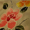 Futae, Halvány barackszin alap, piros, narancssárga, fehér és zöld virágokkal. |